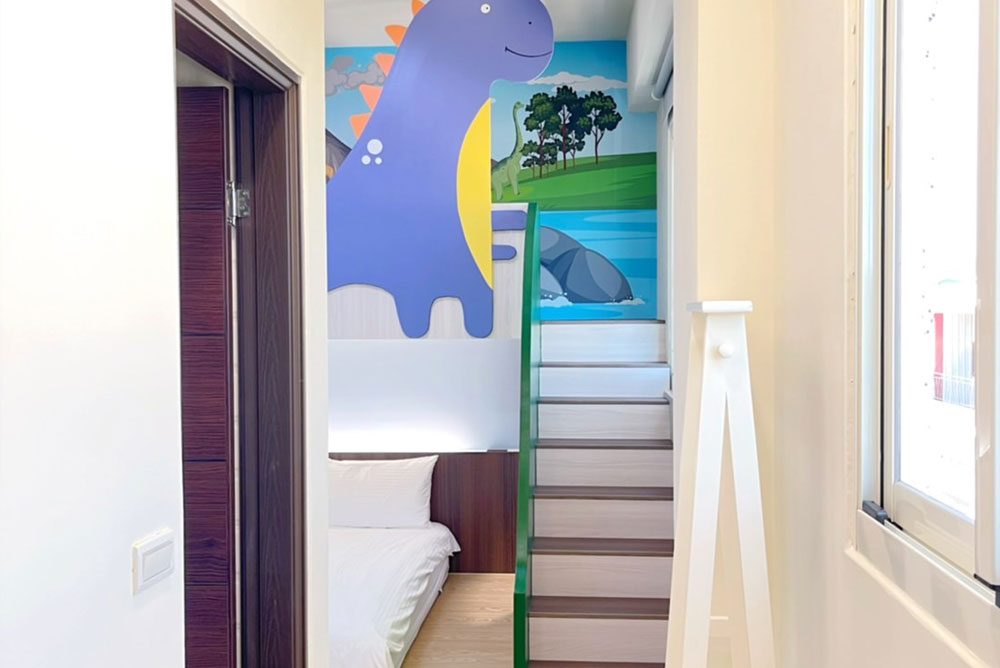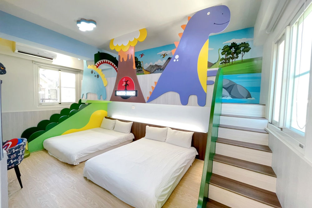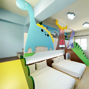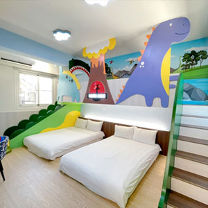 三樓-301熱氣球主題四人房,302侏羅紀公園四人房。
