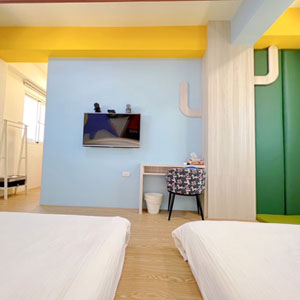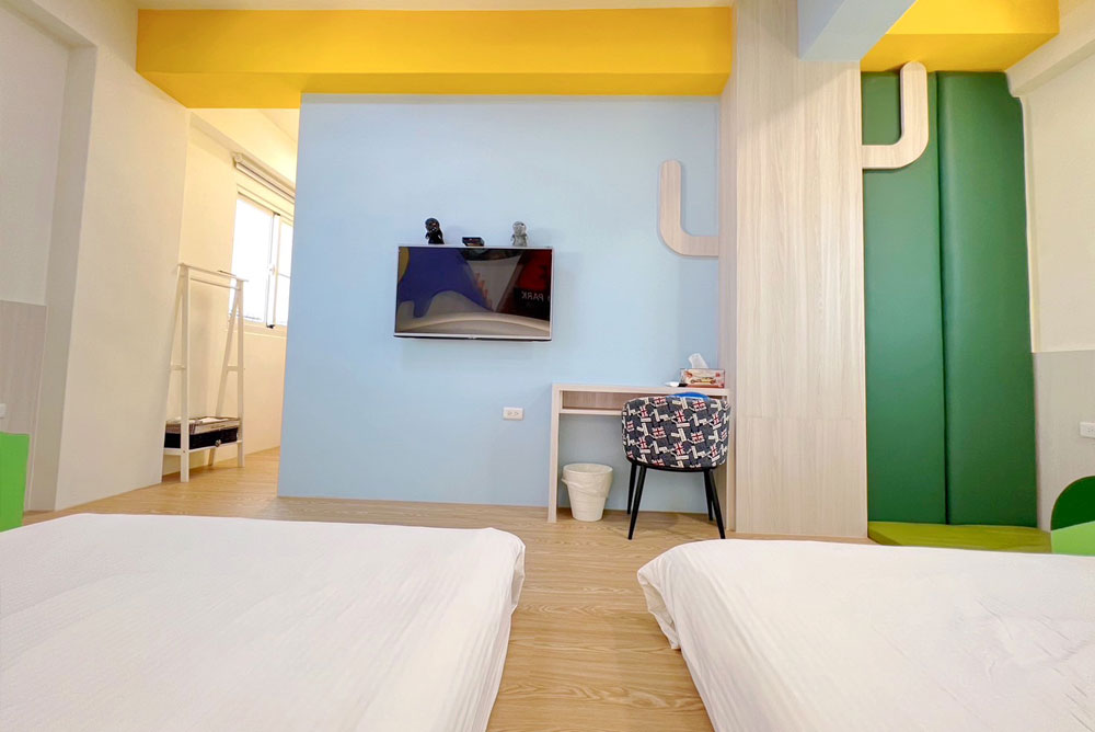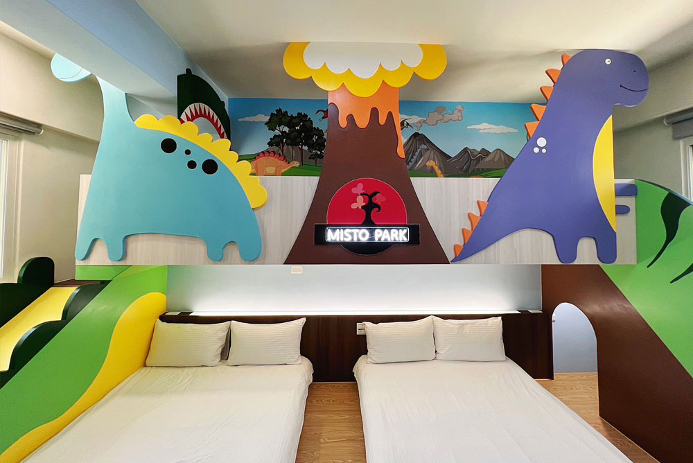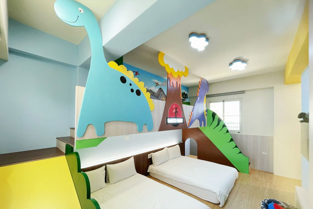 - 加床是加床墊,除了繽紛糖果屋、動物派對沒有高低差,其他房型加床墊在地上會比較低一些喔。